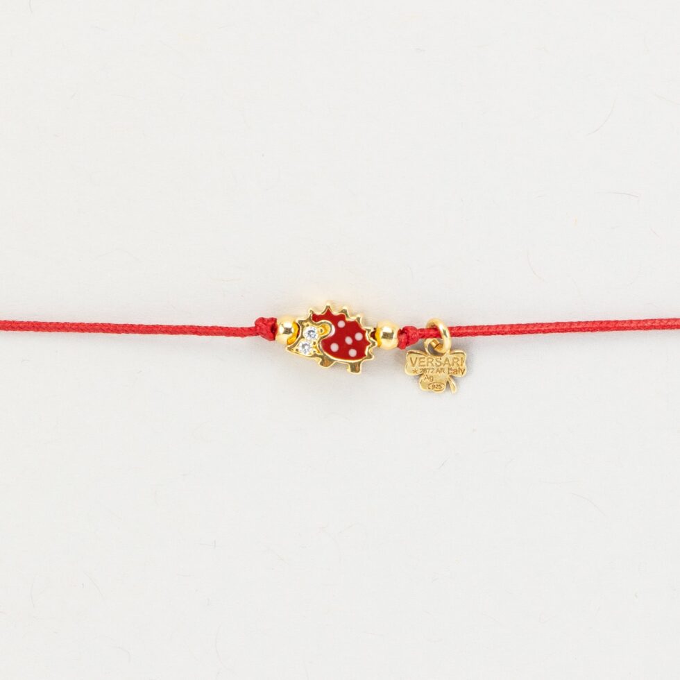 Bracciale cordino con Riccio in argento 925, galvanica in oro 24Kt e smalto, simbolo di protezione, resilienza e delicatezza.