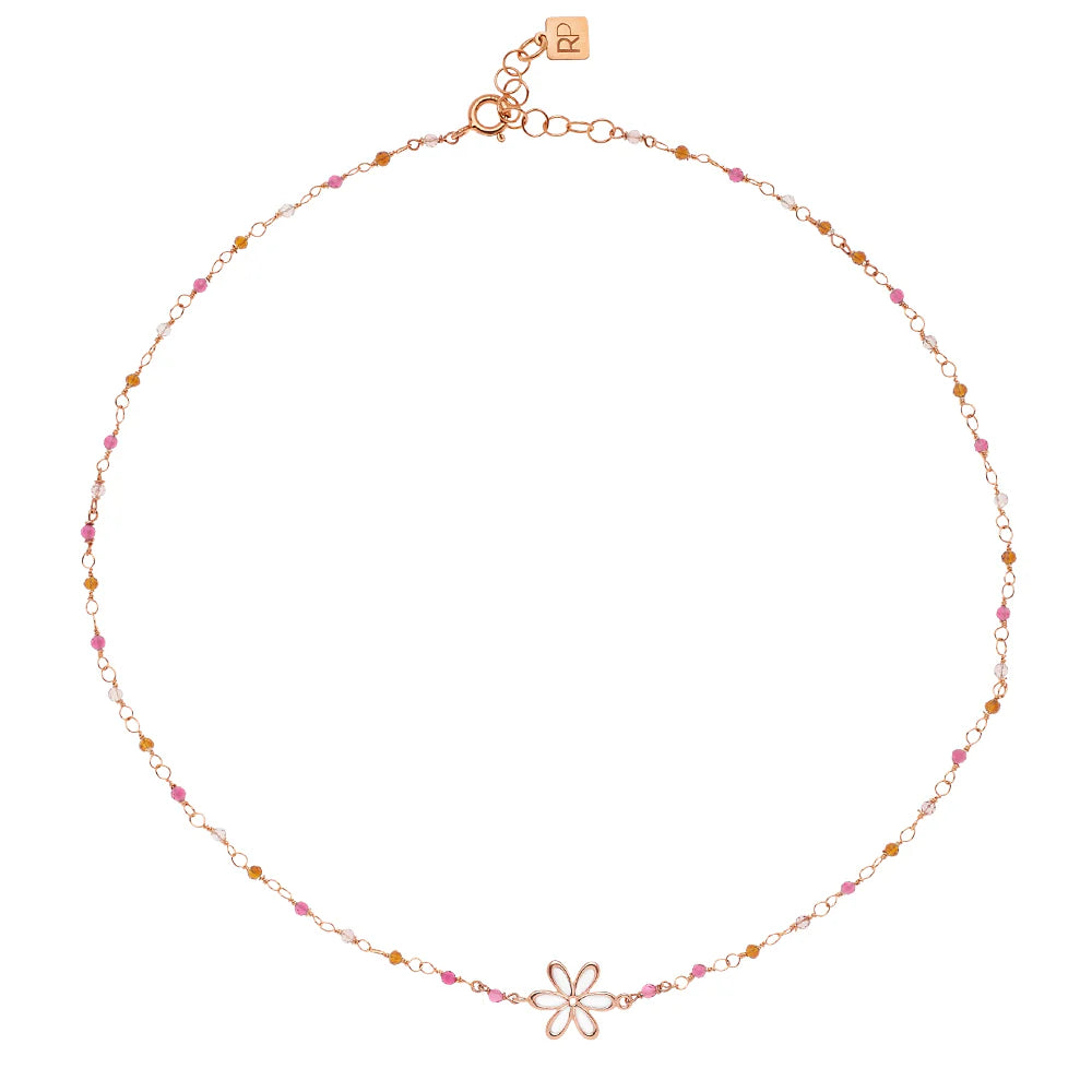 Girocollo in Argento 925 placcato oro rosé e smalto a cattedrale Cotton White e mix di pietre naturali con granato.
