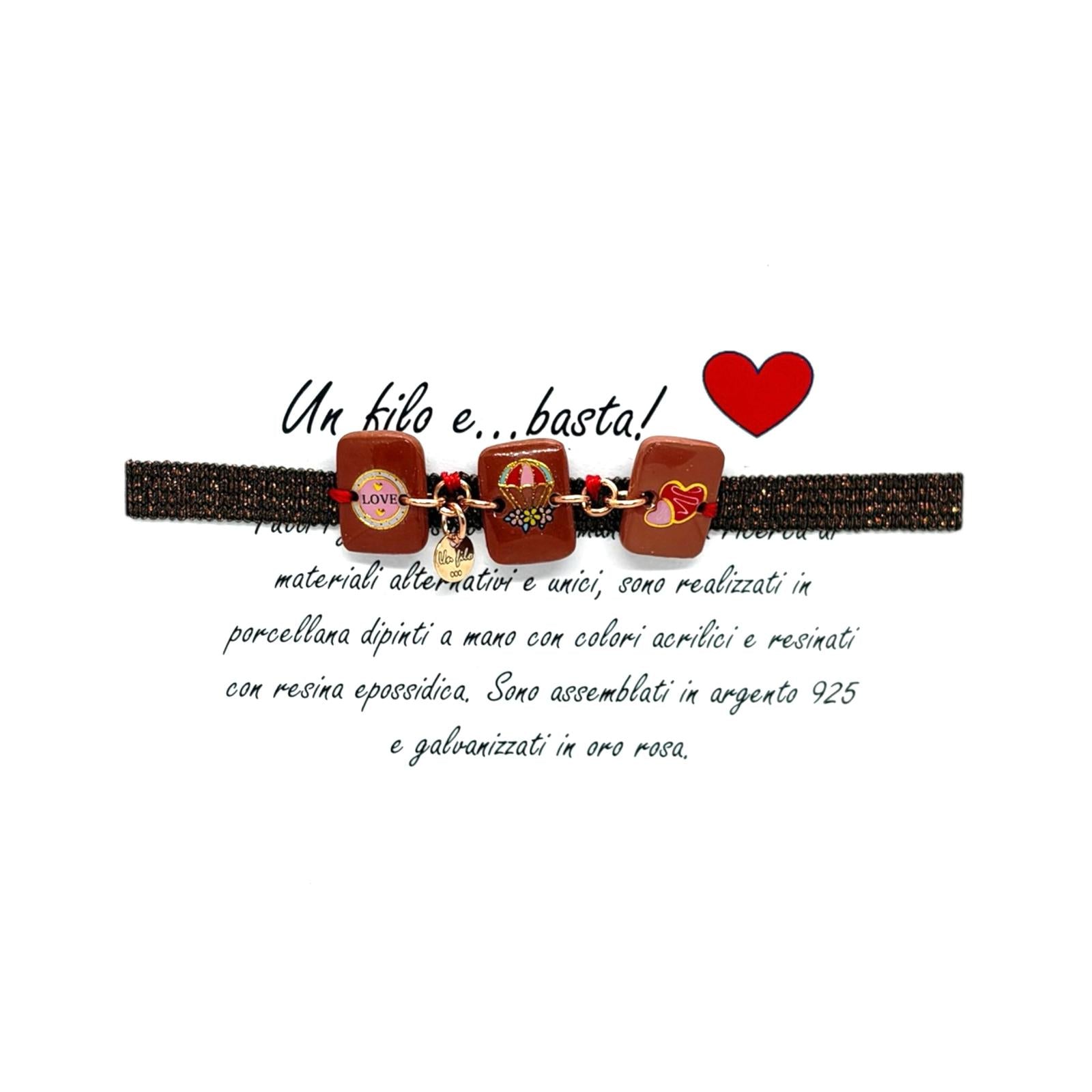 - Fatto a mano: Ogni bracciale della collezione è realizzato artigianalmente, con una cura dei dettagli che rende ogni pezzo unico. Le tre targhette in porcellana sono lavorate a mano, aggiungendo eleganza e raffinatezza al design.