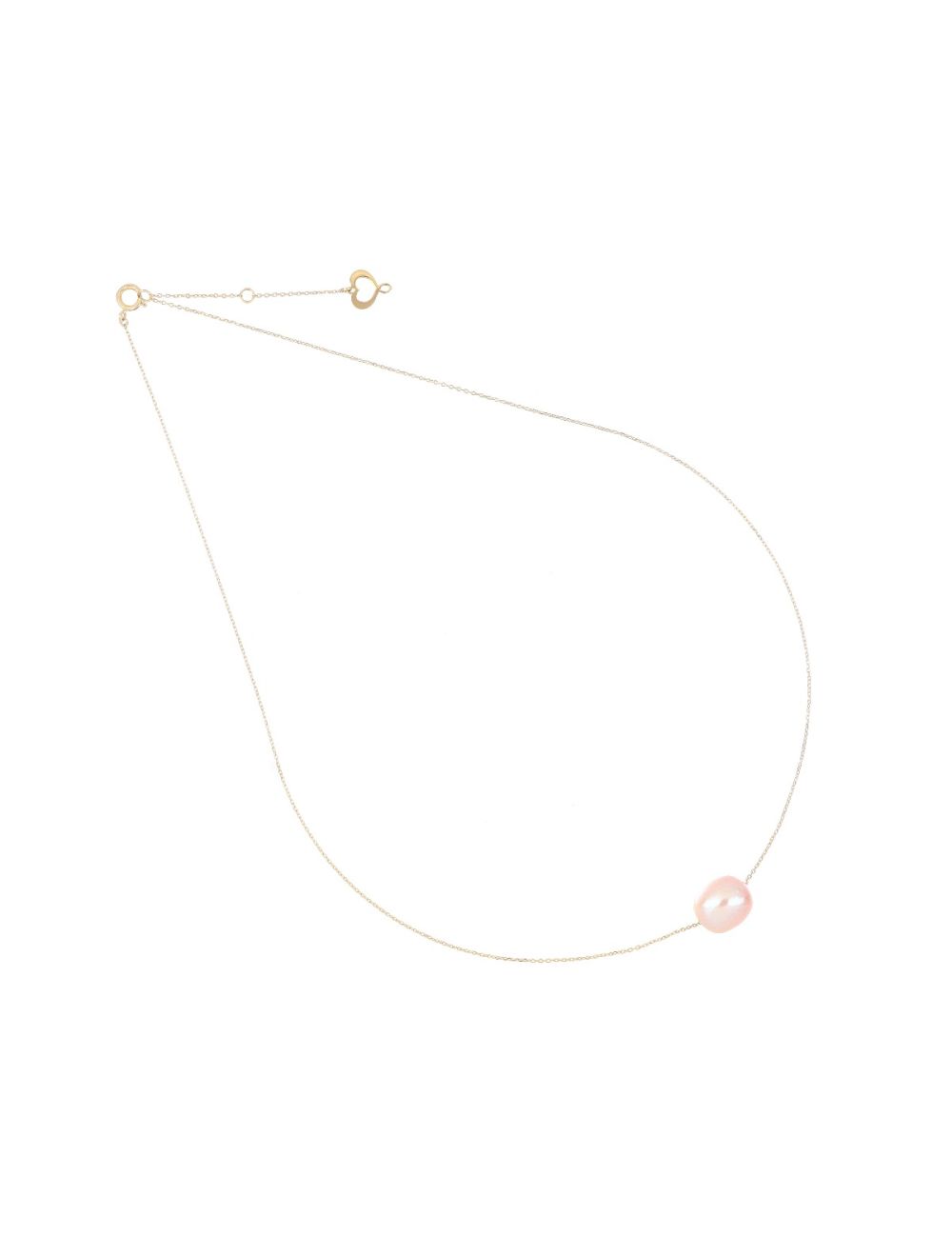 Girocollo in oro giallo 18 carati con perla ovale rosa di dimensioni 9/10 mm al centro.