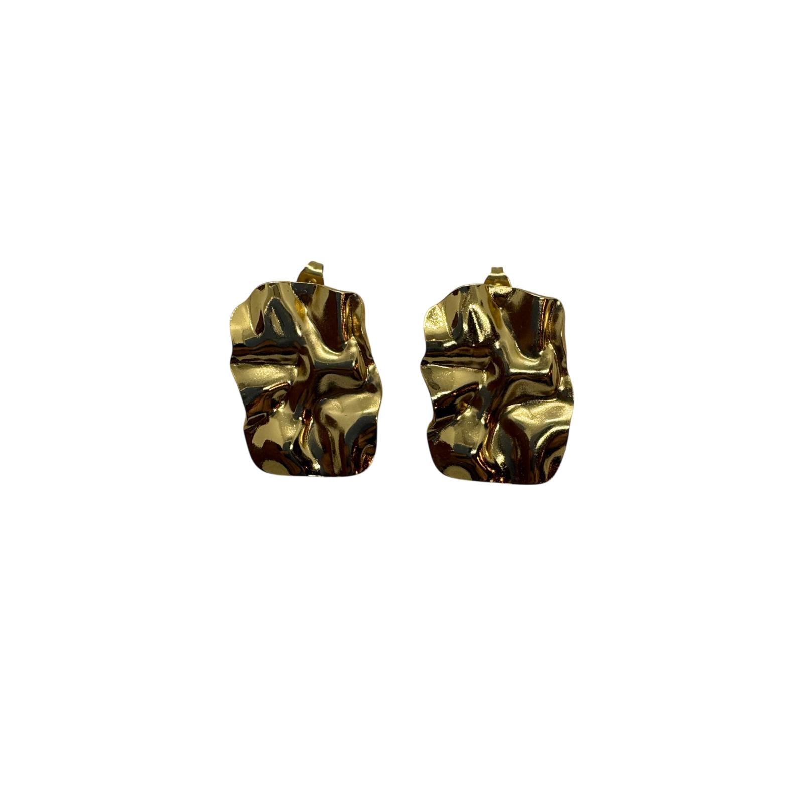 Questi raffinati orecchini a cerchio in acciaio inossidabile con placcatura dorata si distinguono per la loro esclusiva texture martellata artigianale. La forma a mezzaluna crea un effetto elegante e sofisticato, mentre la superficie lavorata a mano cattura e riflette la luce in modo unico e affascinante.